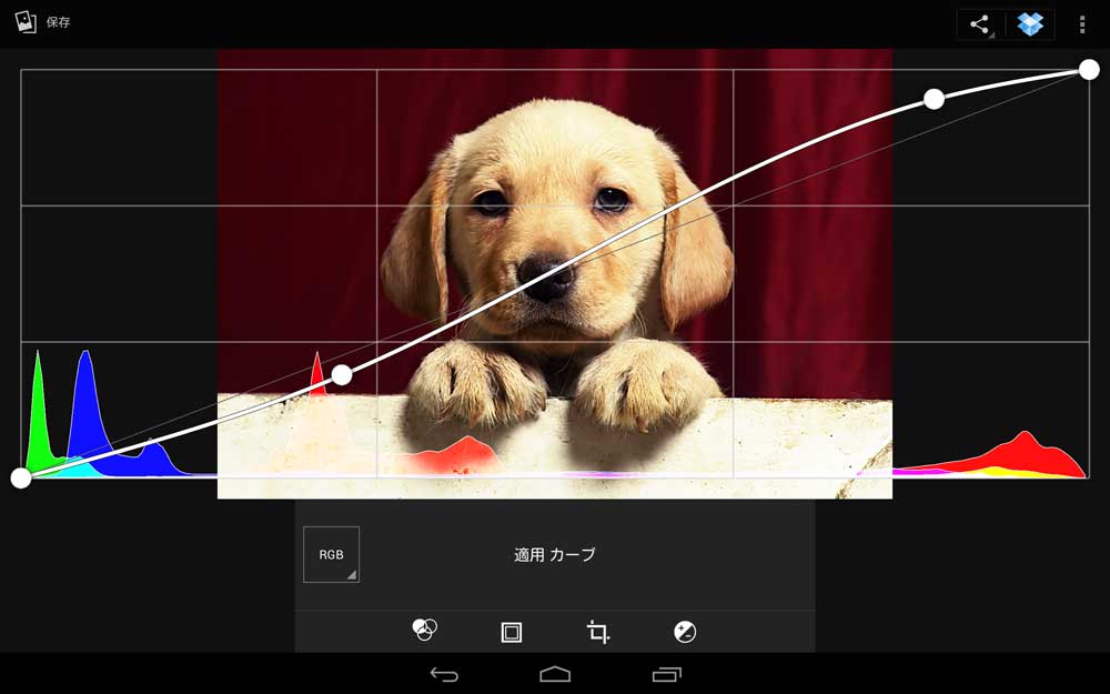 4画面上のスライダなどをタップして調整したあと、[適用]をタップして修正を適用します。